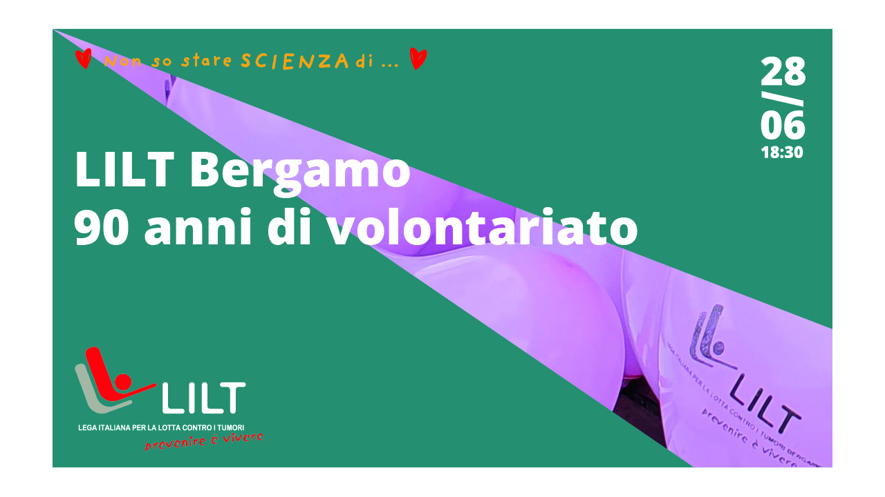 Venerdì 28 maggio alle ore 18:00, BergamoScienza ospiterà l’evento celebrativo del 90° anniversario di LILT Bergamo Onlus: il racconto delle testimonianze relative all’attività svolta in questi anni nei quali la vita dell’Associazione si è mescolata con quella delle strutture sanitarie del territorio e, più in generale, con la storia dei bergamaschi.