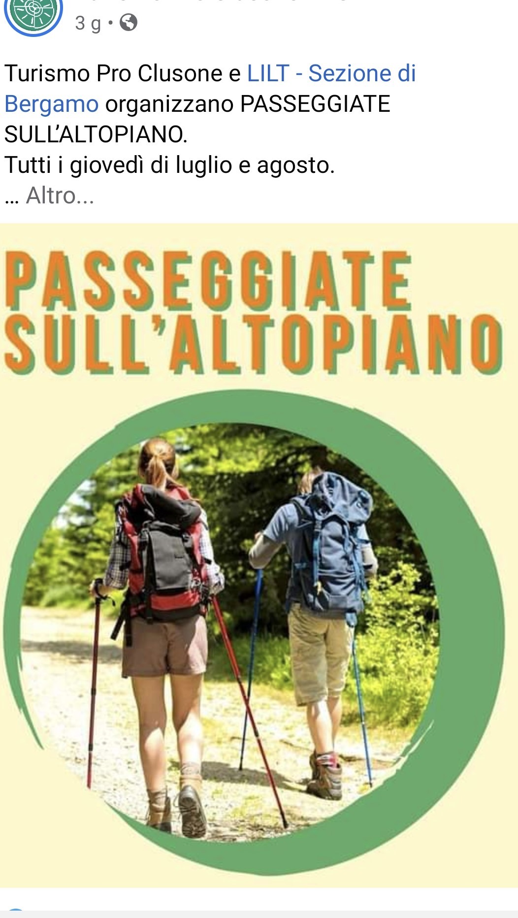 Nei mesi di luglio e agosto le Volontarie della Delegazione dell’Alta Valle Seriana insieme a Turismo Pro Clusone propongono passeggiate sull’altopiano!