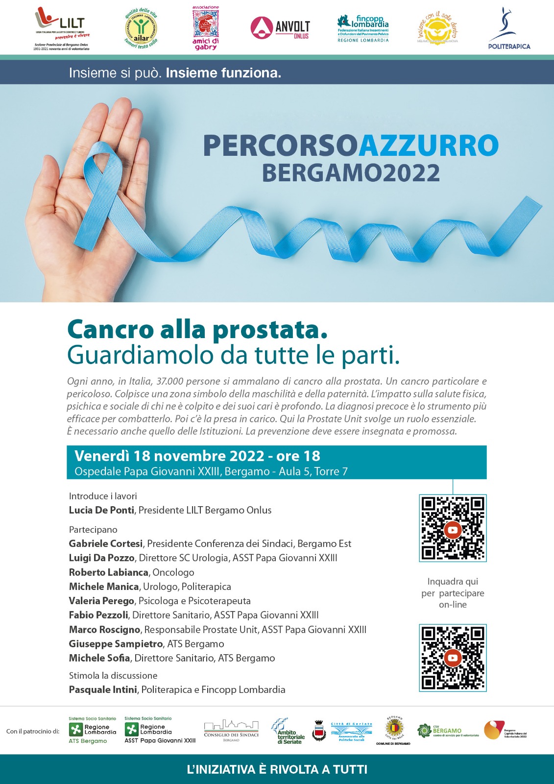 Il cancro della prostata si può combattere! La diagnosi precoce è l’arma più potente, l’informazione corretta è lo strumento più efficace! Ne parliamo il 18 novembre con un gruppo di esperti!