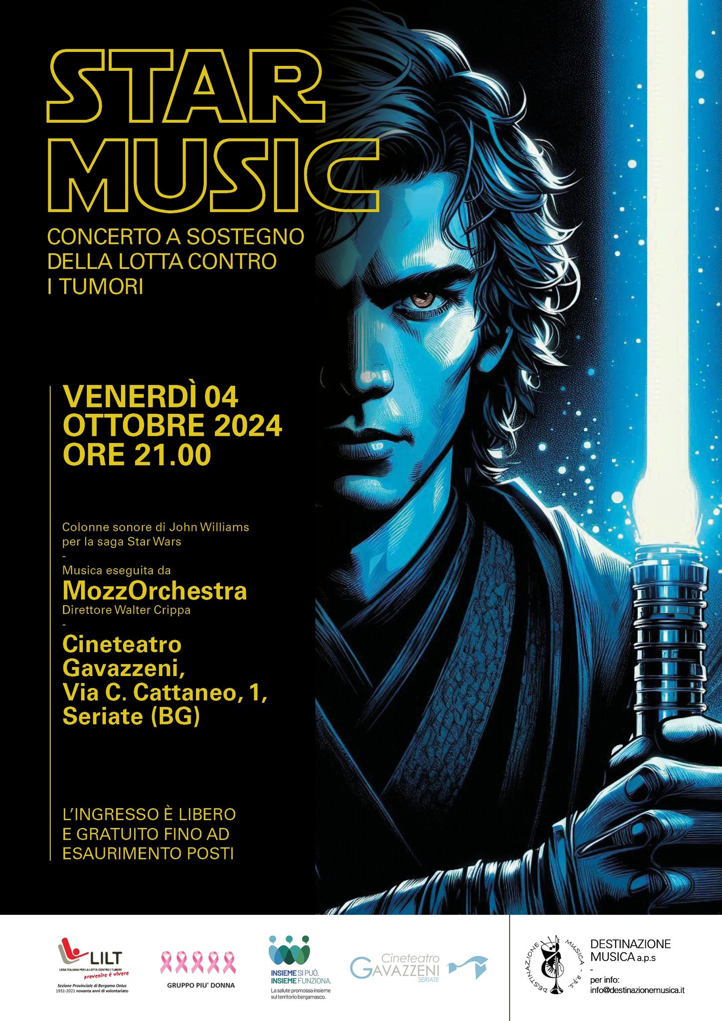 • 4/10 Concerto al teatro Gavazzeni di Seriate con MozzOrchestra e le musiche di Star Wars con le volontarie LILT  di “Più Donna”. Ingresso gratuito
